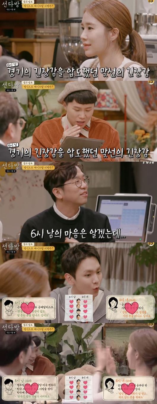 이후 6시 남녀가 등장했다. 여자 친구 목에 금메달을 걸어주고 싶은 근대5종 국가대표 남자와 자칭 '공부덕후'를 벗어나 이제 연애에 투자하고 싶은 새내기 한의사 여자의 만남이었다.