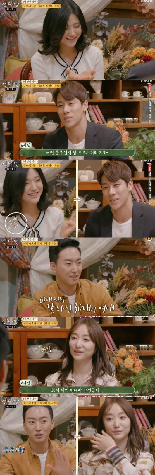 이후 본격적인 소개팅이 시작됐고 6시 남녀가 등장했다. 여자 친구 목에 금메달을 걸어주고 싶은 근대5종 국가대표 남자와 자칭 '공부덕후'를 벗어나 이제 연애에 투자하고 싶은 새내기 한의사 여자의 만남이었다.