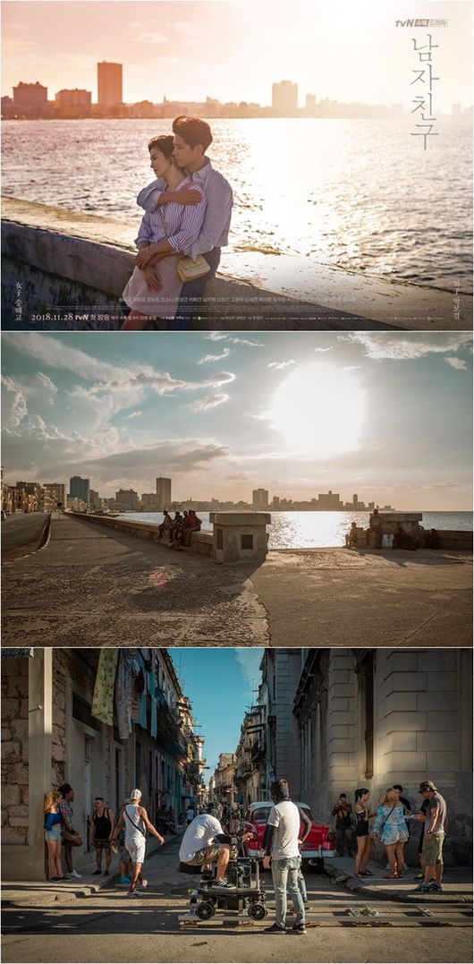 ‘남자친구’ 제작진은 “쿠바는 촬영 허가가 쉽지 않은 곳이라서 오랫동안 공을 들였다. 아름다운 장면을 탄생시키기 위해 남미의 태양 아래서 한마음 한 뜻으로 뭉친 모든 배우들과 스태프들 덕분에 보기만 해도 설레는 장면들이 탄생해 만족스럽다”며 “쿠바인들의 흥겨움과 미적 요소들이 드라마 곳곳에 표현될 예정이니, 이국적이고 아름다운 쿠바의 모습으로 채워질 ‘남자친구’ 본 방송에 많은 관심과 기대 부탁 드린다”고 전했다.