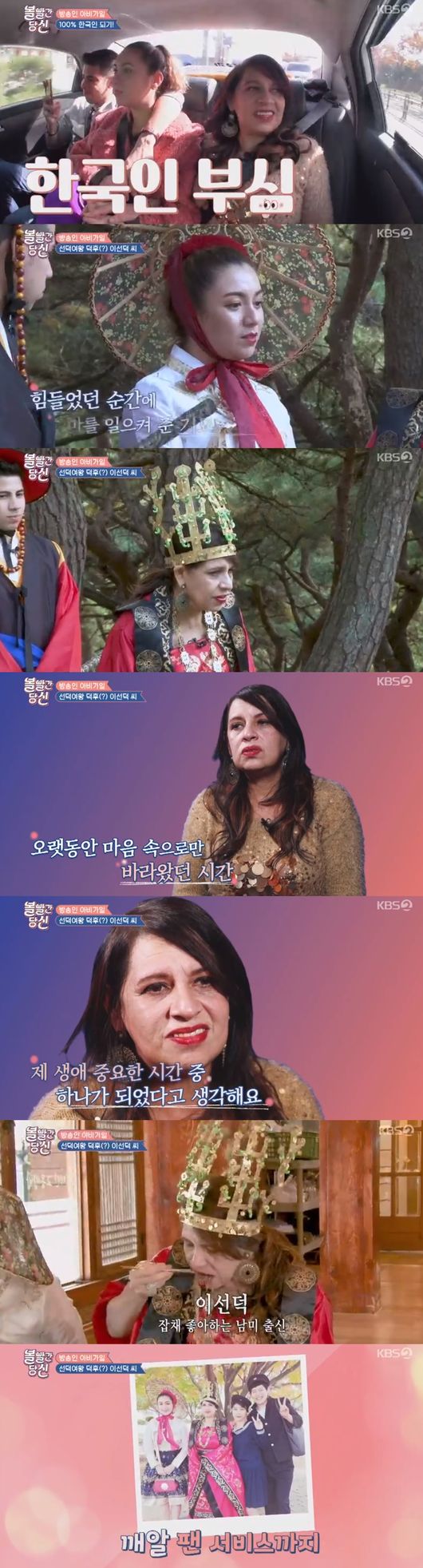 경주 여행에서 빠질 수 없는 한복 입기. 아비가일의 엄마는 선덕여왕의 의상을 입고 우아한 자태를 뽐냈다. 이선덕은 "꿈이 이루어졌다. 선덕여왕이 됐어"라고 미소를 지었다.