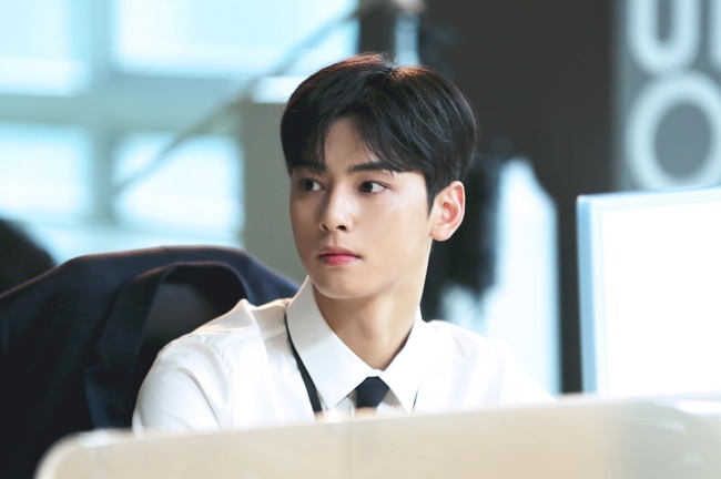 21일 공개된 뮤직비디오 현장 사진에는 차은우가 컴퓨터 앞에 앉아 정장을 입은 채 그윽한 눈빛으로 어딘가를 응시하는 모습이 담겼다. 정장과 헤어스타일로 성숙미를 드러낸 차은우는 독보적인 비주얼과 동시에 섬세한 연기로 곡의 몰입도를 높일 예정이다.