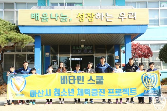 2018시즌 KEB하나은행 K리그2서 우승한 아산무궁화프로축구단(구단주 오세현)이 지난 19일 프로축구연맹의 발표에 따라 승격이 좌절된 가운데 프로팀으로서 의무인 지역공헌활동을 소홀히 하지 않기 위해 송남초등학교(이하 송남초)를 방문해 비타민 스쿨을 진행했다. 이날 송남초 비타민스쿨에는 이명주, 고무열, 임창균이 참가하며 프로그램에 활기를 더 했다.
