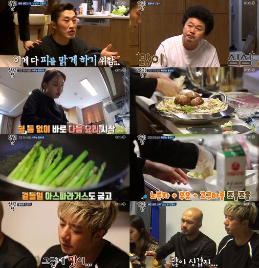 송하율은 “너무 건강식 아닌가”라며 우려했다. 이에 김동현은 “다들 건강에 관심 많을 시기야”라며 음식에 강한 자신감을 보였다.