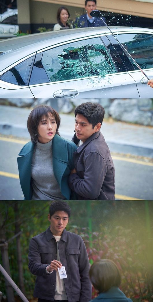 공개된 사진은 누군가에 의해 와장창 깨져버린 자동차 유리를 포착하고 있다. 다음 사진을 통해 자동차에 충격을 가한 인물이 차우경임을 예측할 수 있다. 하늘로 솟구친 자동차 유리 파편은 차우경이 얼마나 충격적이고 처절한 상황에 처했는지 짐작하게 한다. 다음 사진에서는 차우경을 말리는 강지헌의 모습도 확인할 수 있다. 다급한 상황을 진정시킬 때, 경찰 신분을 알릴 때 모두 강지헌의 날카롭고 힘 있는 눈빛이 번뜩이며 빛난다.