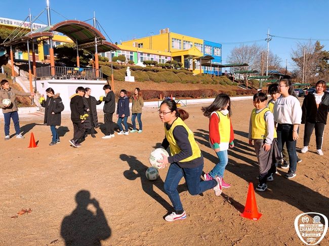 22일 아산무궁화프로축구단(구단주 오세현) 김부관, 김선민, 김영남이 초사초등학교(이하 초사초) 비타민스쿨에 나섰다.