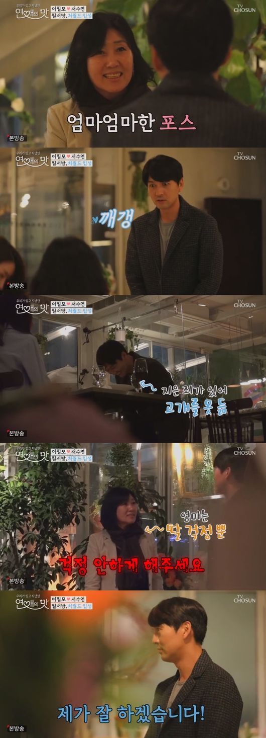 이필모는 서수연과 식사를 하던 중 서수연의 오빠 뿐만 아니라 어머니를 만나게 됐다. 서수연의 오빠를 만난 이필모는 계속 긴장해 말을 쉽게 잇지 못했다. 하지만 서수연의 오빠는 훈남에 성격 좋은 모습으로 MC들의 이목을 집중시켰다.