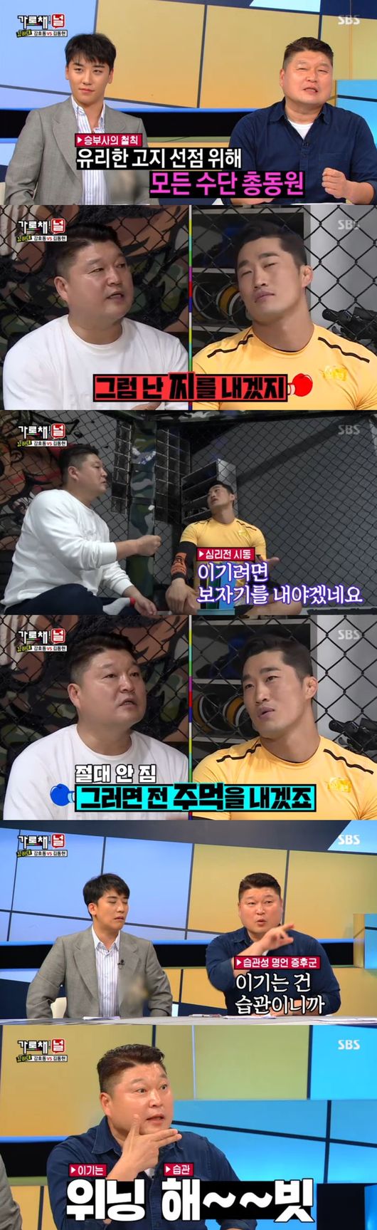 강호동이 도착한 곳은 한 체육관이었다. 실루엣부터 심삼치 않은 대결상대는 현진 격투가 김동현이었다.