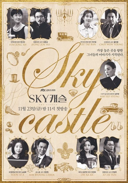 JTBC 새 금토드라마 ‘SKY 캐슬’(극본 유현미, 연출 조현탁, 제작 HB엔터테인먼트, 드라마하우스)은 대한민국 상위 0.1%가 모여 사는 SKY 캐슬 안에서 남편은 왕으로, 제 자식은 천하제일 왕자와 공주로 키우고 싶은 명문가 출신 사모님들의 처절한 욕망을 샅샅이 들여다보는 리얼 코믹 풍자극. 그동안 ‘SKY 캐슬’에 대한 베일이 조금씩 벗겨질수록 시청자들의 궁금증은 무한 상승했다. 이에 오늘(23일) 밤 11시 첫 방송을 앞두고 주요 캐릭터를 한눈에 볼 수 있는 고품격 아트 포스터 공개와 함께 ‘SKY 캐슬’을 더욱 재미있게 즐길 수 있는 관전 포인트를 꼽아봤다.