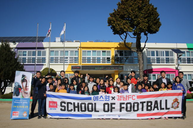 경남 선수 및 구단 관계자와 에스원 경남사업팀-함안지사 직원들은 22일 오전 용덕초 학생들을 위한 깜짝 이벤트를 준비했다. 'SCHOOL OF FOOTBALL' 사회공헌활동의 일환으로 경남의 축구교실, 에스원의 안전교육으로 아이들에게 잊지 못할 추억을 선물했다.