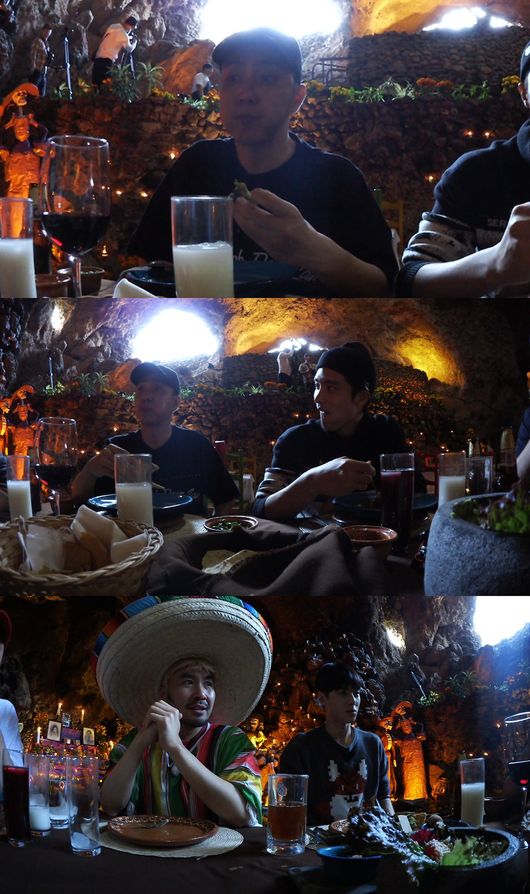이날 방송에서 태양의 피라미드의 기운을 받기 위해 한인 민박 투어에 나선 여섯 사람은 SNS에서도 유명한 천연 동굴 식당을 찾았다. 멤버들은 화려한 색감에 묘한 분위기가 감도는 식당 내부부터 화려하고 다채로운 멕시코 전통 요리에 환호했다. 그러나 기쁨도 잠시 ‘돼지 껍질 튀김요리’와 ‘소금 맥주’ 등 생소한 음식들이 등장하자 쉽사리 마음을 열지 못했다.