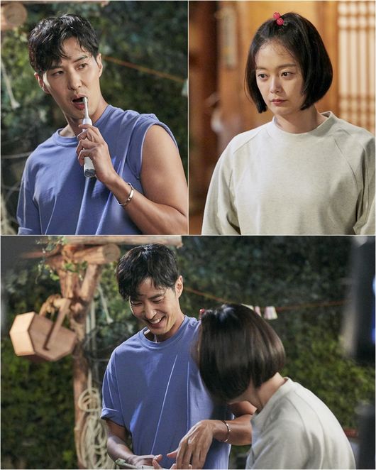 이와 관련 보기만 해도 심장을 두근거리게 만드는 김지석-전소민의 ‘설렘 폭발 양치’가 포착돼 궁금증을 자극시키고 있다. 극 중 여즉도로 강제 유배 온 유백이 문명과 단절된 채 사는 섬처녀 오강순에게 신 문물과의 첫 만남을 성사시키는 장면인 것.
