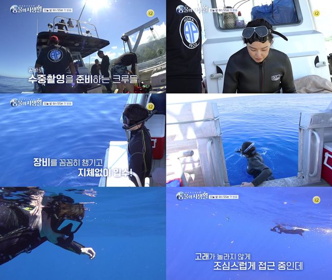 또한 혹등고래의 출몰 시간 역시 예측불가였다. 언제 어디서 나타날지 모르는 혹등고래를 카메라에 담아내기 위해 이하늬와 성열은 수없이 바다 입수를 반복했다. 긴박한 분위기 속 지체 없이 바다로 뛰어드는 두 사람의 모습, 이들의 빛나는 다큐멘터리스트 정신과 열정이 예고돼 기대를 높이고 있다.