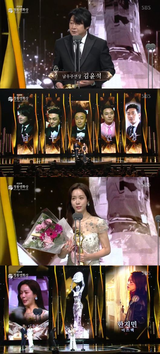 배우 김윤석과 한지민이 주연상을 받으며 시상식의 주인공이 됐다.