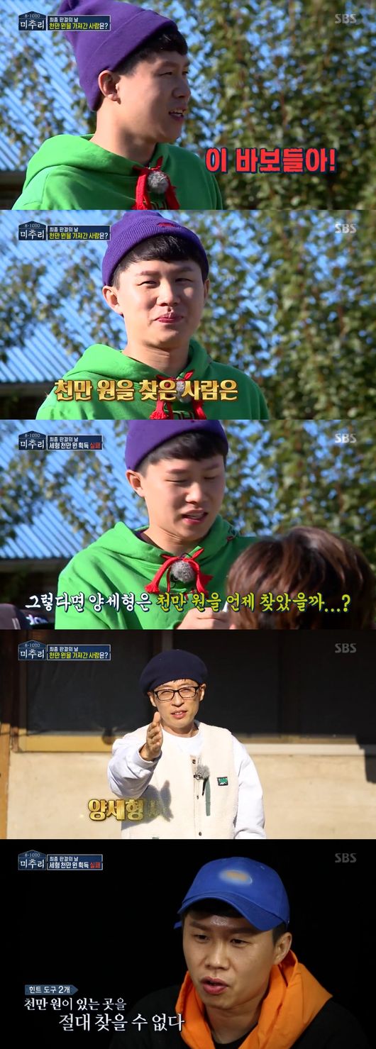 가장 많은 표를 얻은 양세형이 지목됐고, 그는 “나 아니라고 바보들아”라고 마지막 해명을 했지만 지난 밤 천만 원의 행방을 찾은 사람은 바로 그였다. 멤버들이 돈의 주인공을 맞혔기에, 양세형은 천만 원을 가질 수 없게 됐다./ purplish@osen.co.kr