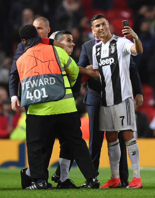 안전요원들이 달려들어 난입한 관중을 제지했지만 호날두는 관중의 휴대폰으로 함께 사진을 찍었다.