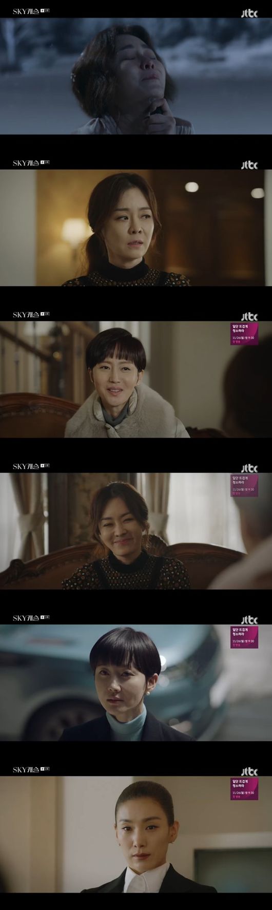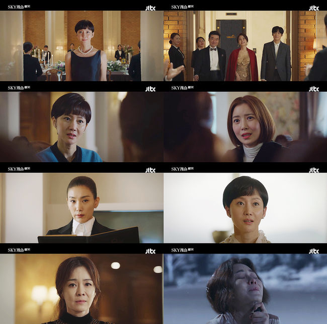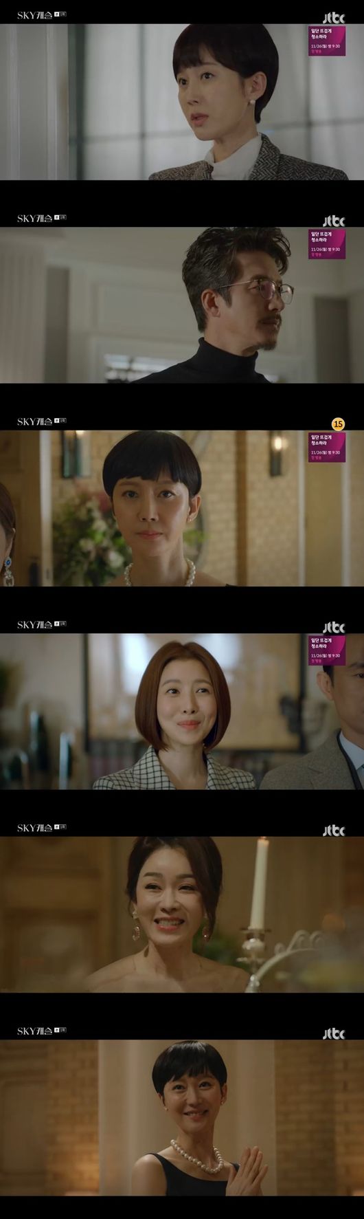 종합편성채널 JTBC 새 금토드라마 'SKY 캐슬'(극본 유현미, 연출 조현탁)이 지난 23일 오후 첫 방송됐다. 자녀들의 입시 전쟁에 뛰어든 상위 0.1% 사모님들의 모습이 그려진 가운데, 아들을 서울 의대에 합격시켜 축하받던 이명주(김정난 분)가 스스로 목숨을 끊는 모습이 그려져 충격을 줬다.