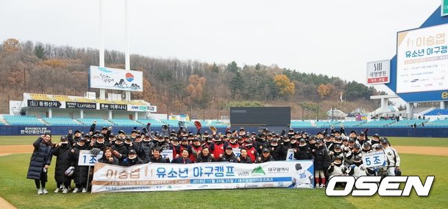(재)이승엽야구장학재단은 24일 대구삼성라이온즈파크에서 '이승엽 유소년 야구캠프 with 대구광역시'를 개최했다. 이승엽 이사장을 비롯해 배영수(전 한화), 구자욱, 김상수, 이지영(이상 삼성) 등 프로야구를 대표하는 신구 스타들이 한 자리에 모였다.