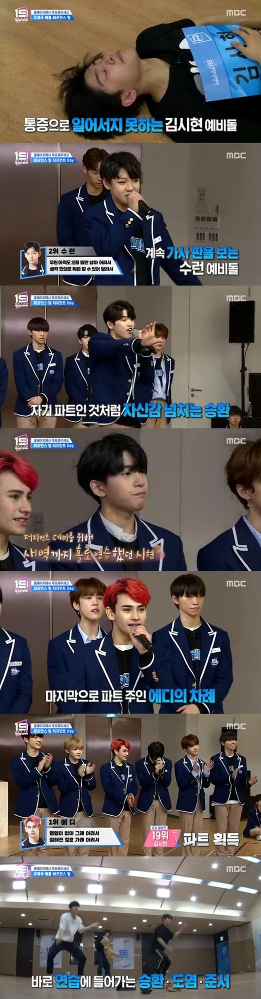 24일 오후 방송된 MBC 예능 프로그램 '언더나인틴'에서는 퍼포먼스팀과 랩팀의 주제곡 무대 준비 과정이 방송됐다.