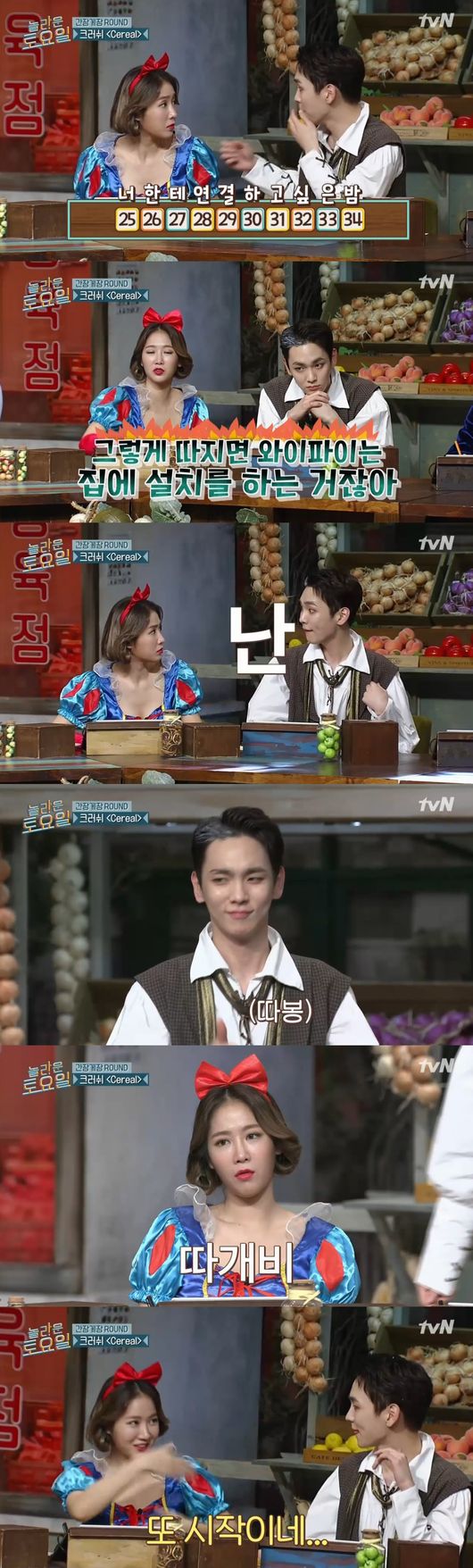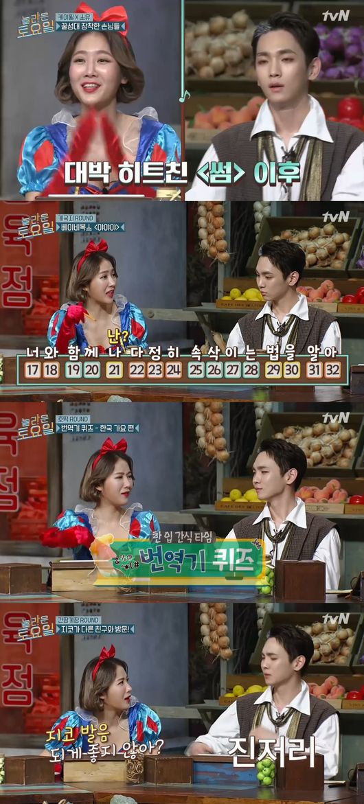 나란히 앉은 두 사람은 에이스의 기운을 풀풀 풍기며 게임에 집중했다. 서로 들은 가사를 조율하고 때론 놀리면서 리얼 아이돌 우정을 뽐냈다. 백설공주로 변신한 소유와 스위니 토드가 된 키의 비주얼 투샷 역시 만점이었다.
