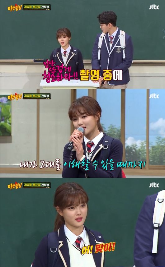 김유정은 지난 24일 방송된 JTBC '아는 형님'에 윤균상과 함께 전학생으로 출연했다. 김유정과 윤균상은 오는 26일 첫 방송되는 JTBC 월화드라마 '일단 뜨겁게 청소하라'의 주인공으로, 드라마 홍보를 위해 오랜만에 예능에 출연하게 됐다.