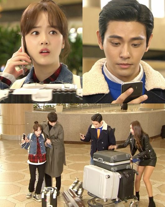 공개된 사진은 내일(26일) 방송될 '강남 스캔들' 첫 회의 한 장면. 신고은과 임윤호가 서 있는 장소는 공항 한가운데로, 휴대전화를 손에 든 채 분주하게 통화하는 신고은과 달리 임윤호는 느긋한 표정으로 자신의 휴대전화를 뚫어지게 들여다보고 있다. 다음 사진에서는 캐리어를 끌고 온 사람 때문에 두 사람이 부딪힌 것으로 보이고 서도영(홍세현 역)이 놀란 신고은(은소유 역)의 어깨를 감싸며 보호하는 모습이다.