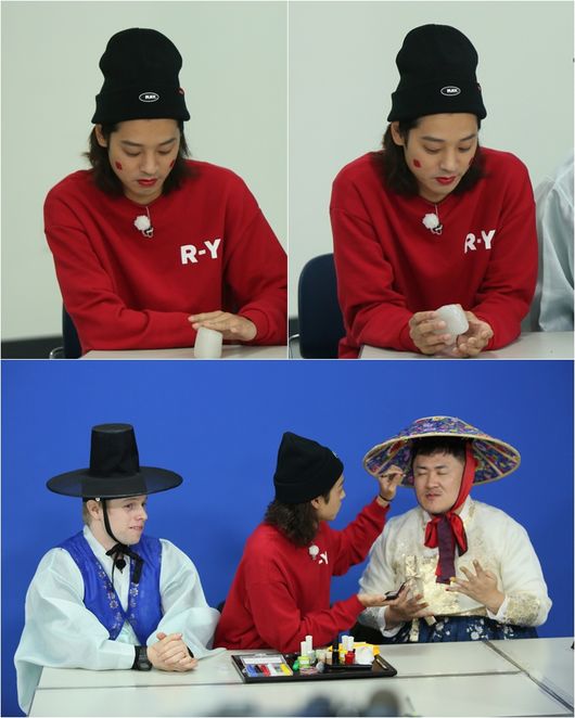 이날 정준영은 데프콘-올리버쌤과 ‘텍사스 카우보이’ 팀을 결성해 뷰티 크리에이터로 변신한다. 일명 ‘인간 비빔밥’ 콘텐츠에 도전하게 된 세 사람은 장인 정신이 깃든 섬세한 손길로 전주 비빔밥을 서로의 얼굴에 형상화하는 등 메이크업 아티스트로 분한 이들의 모습이 촬영장을 웃음으로 채웠다는 후문. 보는 이들의 시선을 제대로 강탈하는 정준영의 연지곤지 비주얼은 ‘1박 2일’을 통해 확인할 수 있다. / nahee@osen.co.kr