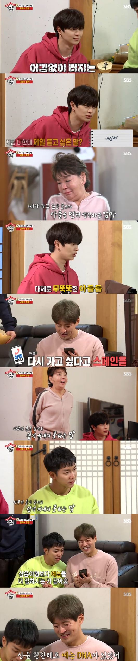 다음은 상윤이 시작했다. 마지막 질문에 대해 역시 이상윤도 '사랑해'를 예상했으나, 母는 "너가 결혼한다는 말 듣고 싶다"고 말해 웃음을 안겼다. 전화를 바꾼 승기는 "어머니가 더 예능감이 있으시다"고 말했고 결국 이상윤이 벌칙에 당첨되며 불을 지피게 됐다. 가까스로 불효자를 면한 성재도 웃음 지었다. 母의 취향을 알아가기 위한, 박터지는 효자전쟁이었지만, 母에 대한 사랑을 다시금 깨닫는 시간이었다. /ssu0818@osen.co.kr