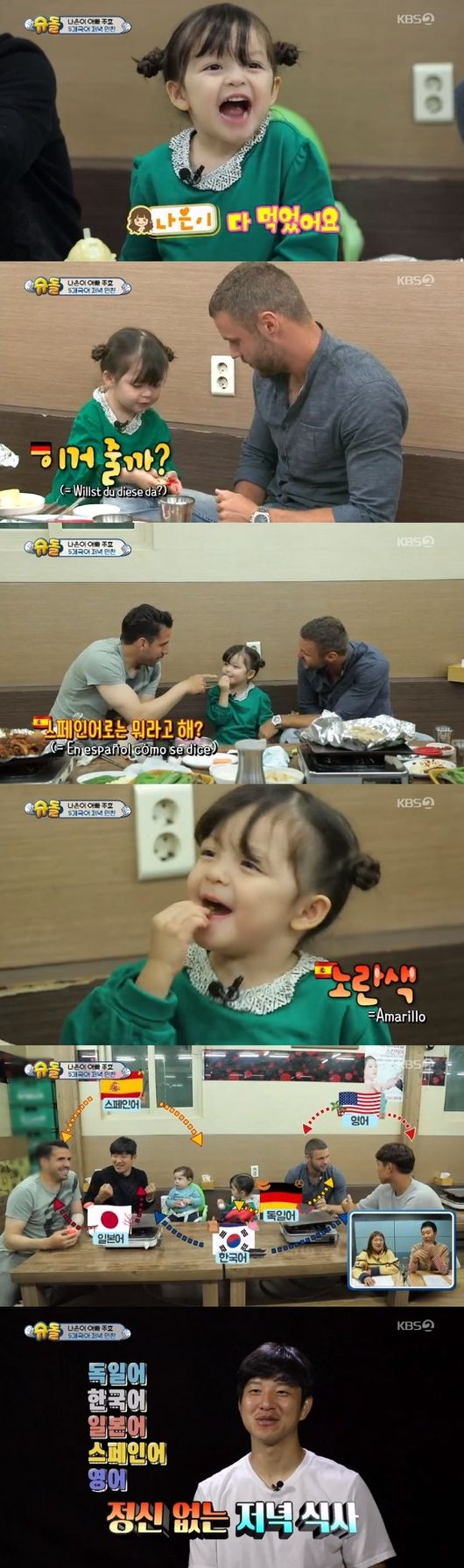 '슈퍼맨이 돌아왔다' 박나은이 귀여운 비주얼과 총명한 3개국어 실력, 다양한 먹방까지 선보이며 시청자의 웃음을 이끌어냈다.