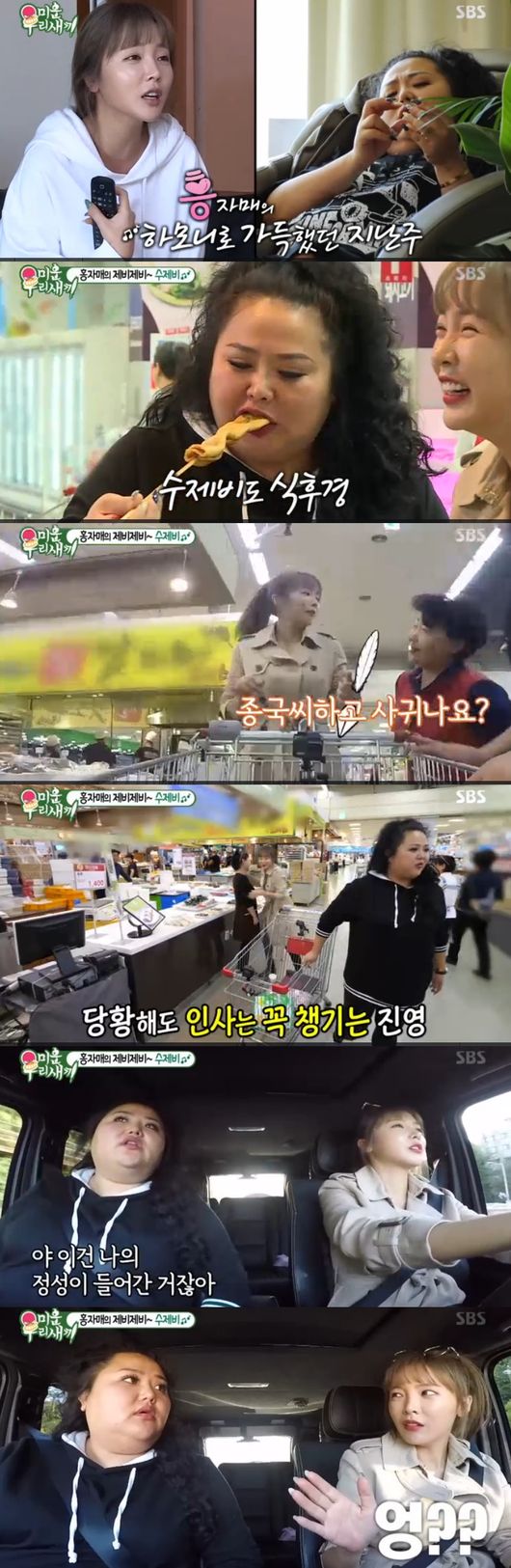 홍진영과 홍선영 두 '흥' 자매의 모습이 그려졌다. 마트에 도착하자마자 음악소리에 두 사람은 댄스를 자동반사, 이어 노래를 부르며 마트쇼핑을 시작했다. 홍진영 언니는 장을 보는가 싶더니 바로 어묵을 시식,