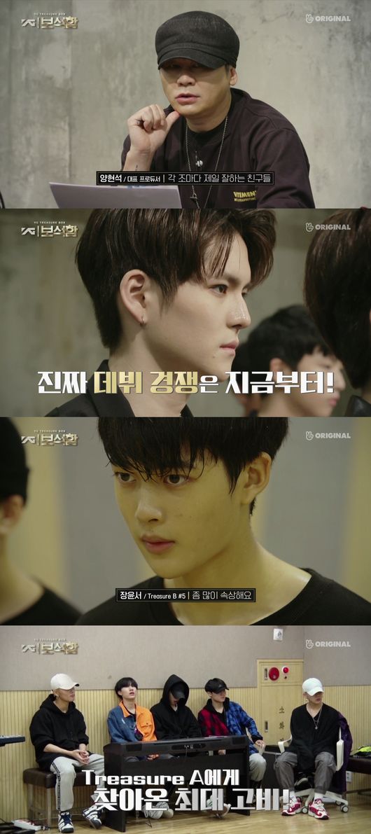 이번에는 자신이 속한 트레저A, B, C, J 각 팀 내에서 평가받아야 하는 만큼 연습생들은 모두 부담을 느끼며 긴장한 표정을 지었다.
