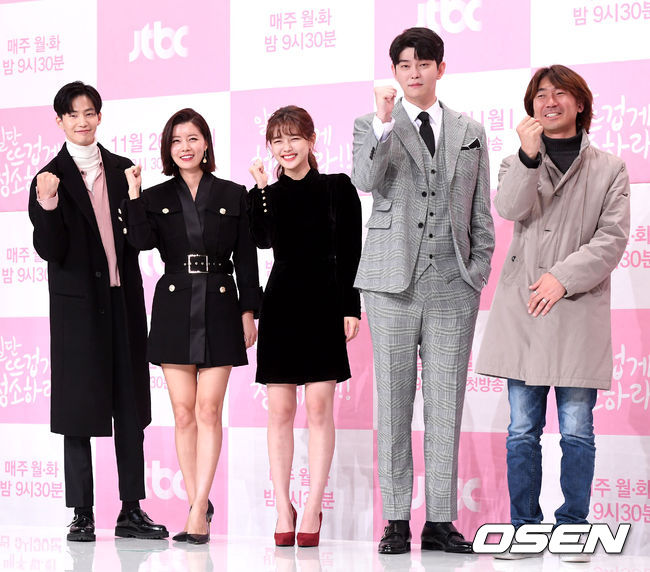 26일 오후 서울 영등포 타임스퀘어에서 JTBC 새 월화드라마 ‘일단 뜨겁게 청소하라(극본 한희정, 연출 노종찬) 제작발표회가 열린 가운데 노종찬 감독, 윤균상, 김유정, 송재림 등이 참석했다.