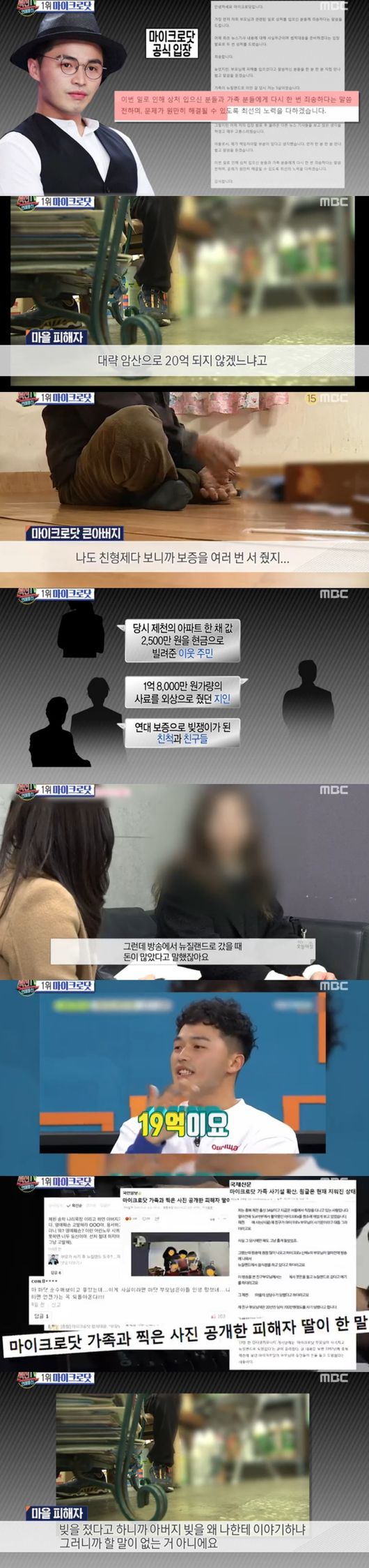 사기설이 불거지자 마이크로닷은 "사기사건 전혀몰랐다. 두 번 상처드려 죄송하다"며 180도 다른 입장으로 사과했다.