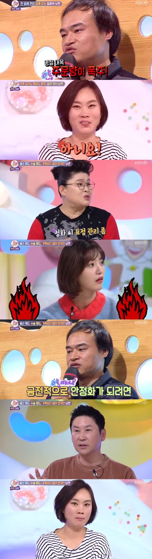 26일 방송된 KBS 2TV '안녕하세요'에 공장에서 24시간 내내 지내는 일 중독 남편 때문에 힘든 아내의 이야기가 공개됐다.