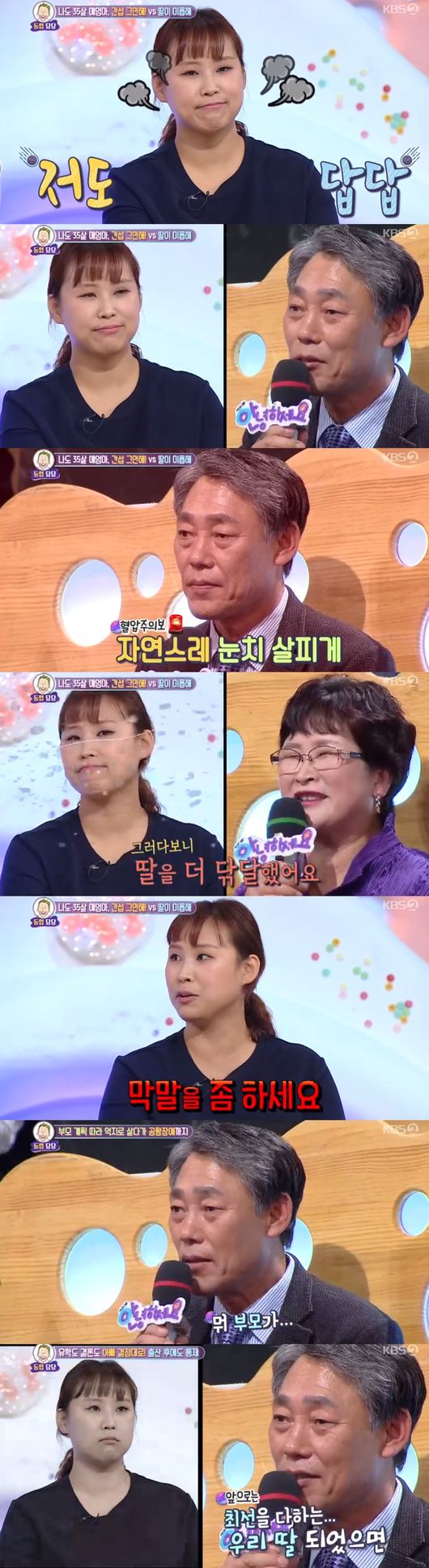 딸은 "아버지가 말하면 이제 듣고 싶지 않다"며 "아빠가 막말을 좀 해서 상처를 많이 받았다. 출산후 맞벌이를 하라고 이야기를 해서 이력서를 넣고 다녔는데 합격 통보가 없었다. 그때 아버지가 '네가 뚱뚱해서 그런거야'라고 말했다. 아버지 때문에 참다가 공황장애가 왔는데 한번도 위로를 받은 적이 없었다"고 전했다.