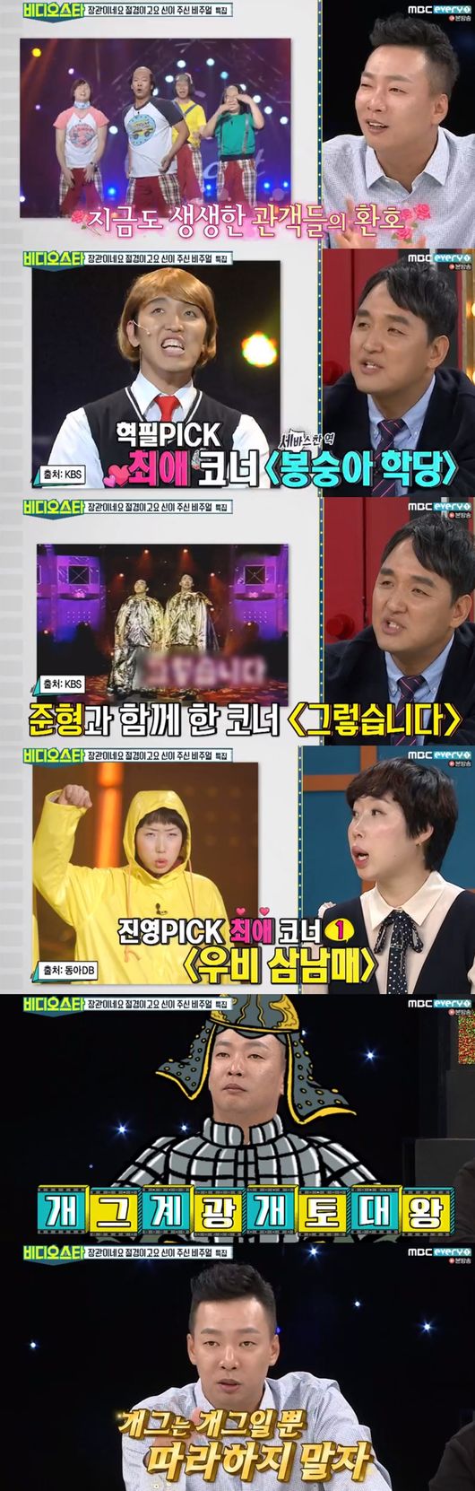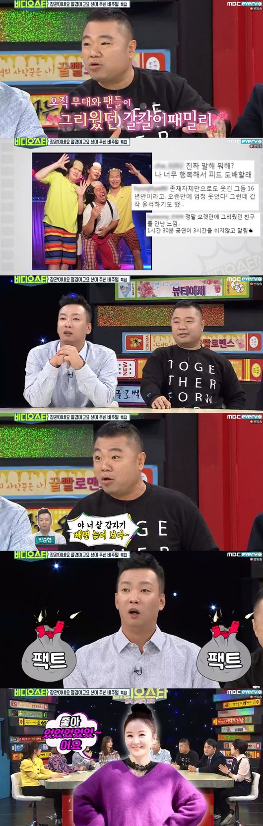 27일 방송된 MBC에브리원 '비디오스타' '장관이네요 절경이고요 신이 주신 비주얼 특집'편에는 2000년대 초 개그콘서트의 전성기를 풍미한 개그맨 박준형, 정종철, 임혁필, 개그우먼 권진영이 출연했다.