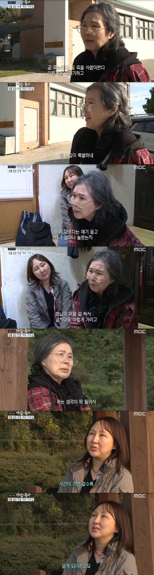 27일 방송된 MBC 시사교양 '휴먼다큐-사람이 좋다'에서는 '국민엄마' 이주실의 인생이 그려졌다. 이주실은 영화 '꽃손'이 '2018 서울 노인영화제' 개막식으로 무대에 올랐다. 데뷔 54년차 연극계의 대모로 불리는 그녀는 "고등학교 졸업후 바로 직장에 취직, 야간대학을 다녔다. 가정형편이 그럴 수 밖에 없었다"면서 그 당시 특상을 받은 것이 동기가 돼서 방송활동을 시작했다고 했다.