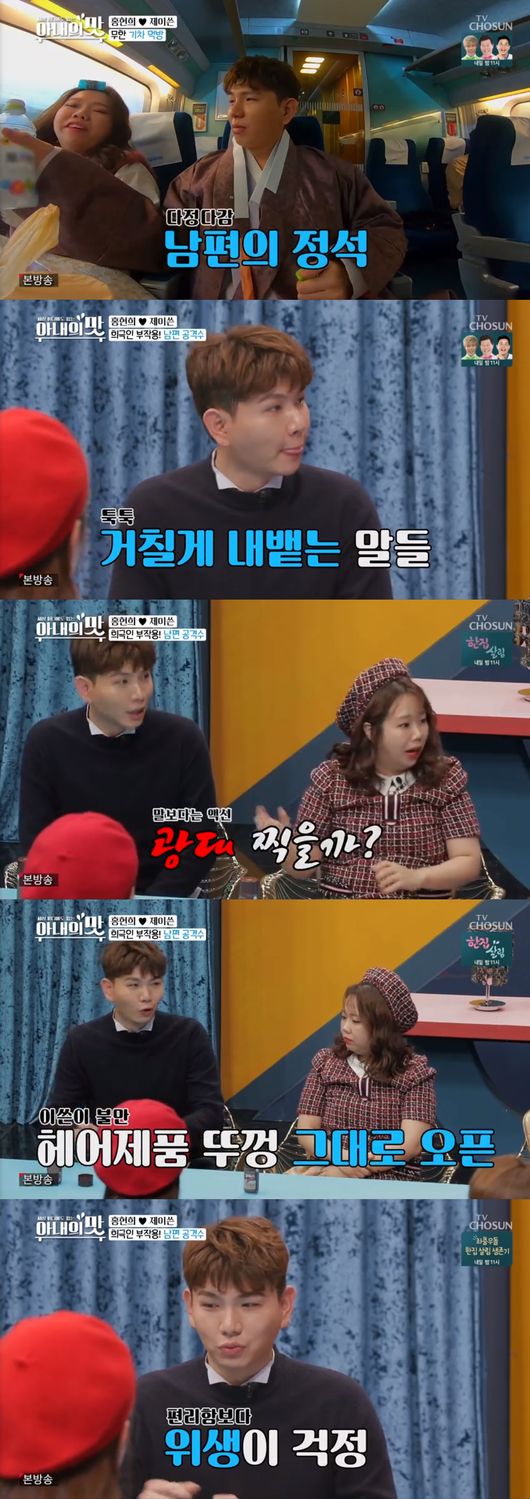 지난 27일 방송된 TV조선 ‘아내의 맛’에서는 결혼한 지 한 달 정도 된 홍현희, 제이쓴 부부가 출연했다. 두 사람은 싸울 때도 있다고 털어놓았다. 제이쓴은 “화장실에서 헤어제품 뚜껑을 그대로 오픈하고 나온다. 나 같은 경우는 위생을 위해 닫아달라는 건데 물티슈도 뚜껑을 닫아놔야 하는데 아내는 열어놓는다”고 폭로했다.