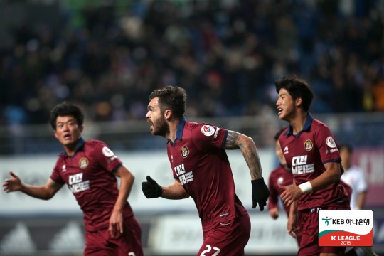 대전은 28일 오후 대전월드컵경기장서 열린 2018 KEB하나은행 K리그2(2부리그) 준플레이오프서 후반 23분 키쭈의 결승골에 힘입어 광주를 1-0으로 물리쳤다.
