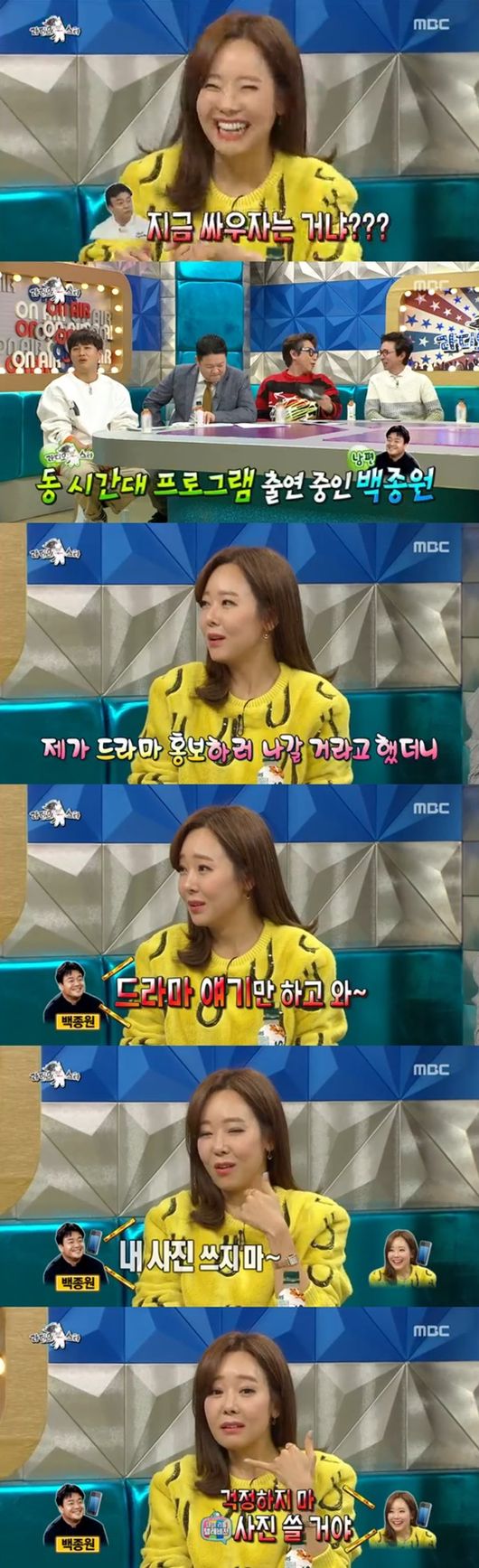 '라디오스타'의 소유진이 '골목식당'에 출연하는 남편 백종원과의 맞대결을 위해 백종원의 일화들을 풀어 웃음을 자아냈다.