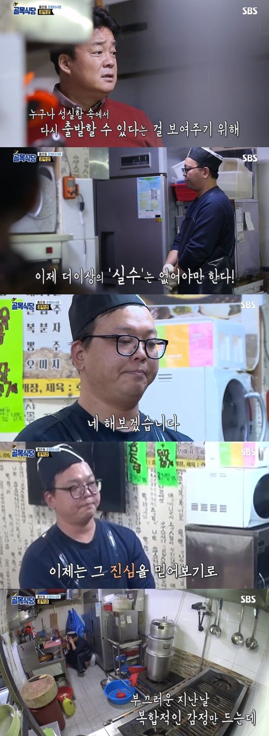 백종원 뿐만 아니라 시청자들의 분노를 이끌어낸 포방터시장의 홍탁집 아들은 이날 방송에서 마음을 다잡고 백종원에게 "다시 열심히 하겠다"는 각오를 전했다. 백종원이 시키는대로 모든 것을 다하겠다고 밝힌 그는 매일매일 백종원에게 인증샷을 비롯한 메시지를 보냈다. 어머니가 퇴근 후에는 홀로 남아 청소를 하며 하루를 정리했다.