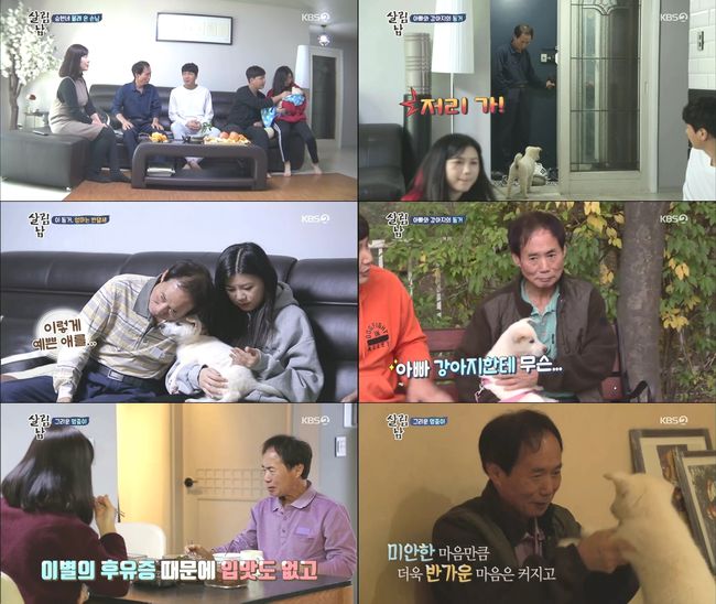 어제 방송에서는 김승현의 딸 수빈이 데리고 온 강아지에게 푹 빠져 애정을 쏟는 김승현 아버지의 모습이 그려졌다.