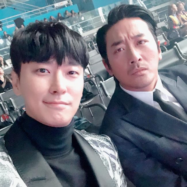 배우 주지훈이 하정우와의 매력 넘치는 인증샷을 공개했다.