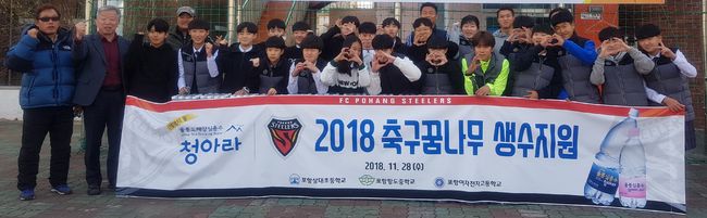 또한 포항은 같은 날 상대초등학교, 포항여자전자고등학교 여자축구팀에도 ‘청아라’ 생수 50박스를 각각 지원했다./dolyng@osen.co.kr