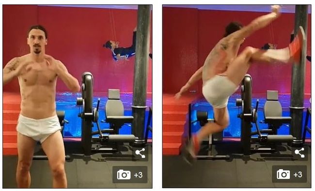 이브라히모비치는 트레이너실에서 짧은 반바지만 입은 채 뒤돌려차기 동작을 연거푸 선보였다. 제자리에서 점프래 자신의 키만큼 다리가 올라갔다. 그는 '기억 나'라는 제목으로 #500, #닌자 해시태그와 함께 SNS에 동영상을 올렸다.