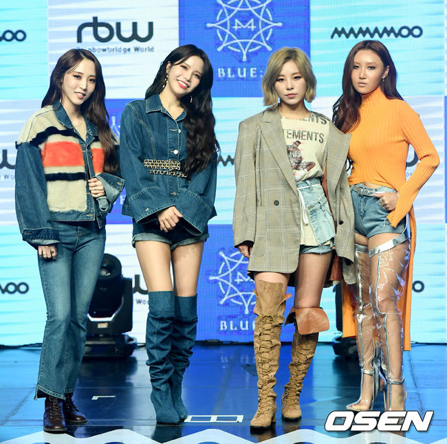 마마무는 29일 오후 4시 30분부터 서울 강남구 청담동 일지아트홀에서 여덟 번째 미니앨범 '블루스(BULE;S)' 발매 기념 쇼케이스를 개최, 신곡 '윈드 플라워'와 '생각보단 괜찮아'의 무대를 최초로 공개했다. 올해 세 번째 컴백인 만큼 남다른 각오도 전했다.