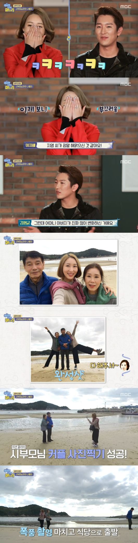 드디어 을왕리 바다에 도착했다. 나름 분위기를 띄우기 위해 지영은 노력했다.어색함 속에서 지영은 사진을 찍자고 했다. 셀카봉에 이어 삼각대까지 등장했다. 이를 화면으로 본 형균은 "원래 부모님이 사진을 안 찍는 스타일, 많이 변하셨다"고 했다. 지영은 두 사람을 위한 사진을 찍어주겠다고 했다. 시부모님 커플사진까지 끝내며 마침내 식당에 도착했다. 장소불문하고 지영은 사진찍기 바빴다. 함께하지 못하는 남편에게 보내주기 위해서였다. 지영이 방송에 빠져있는 동안, 대아구이가 나왔다. 시어머니 만류에도 지영은 새우를 직접 까드리겠다며 안절부절했다. 이때, 방송을 마친 형균이 영상통화로 전화를 걸었다. 지영은 제작진에게 "물론 시부모님과 여행은 정말 재밌었지만, 남편 빈자리가 느껴졌다"며 아쉬움을 드러냈다. 형균은 "나를 대신해 부모님과 함께 즐거운 시간을 보내줘서 고맙다"며 고마운 마음을 전했다.
