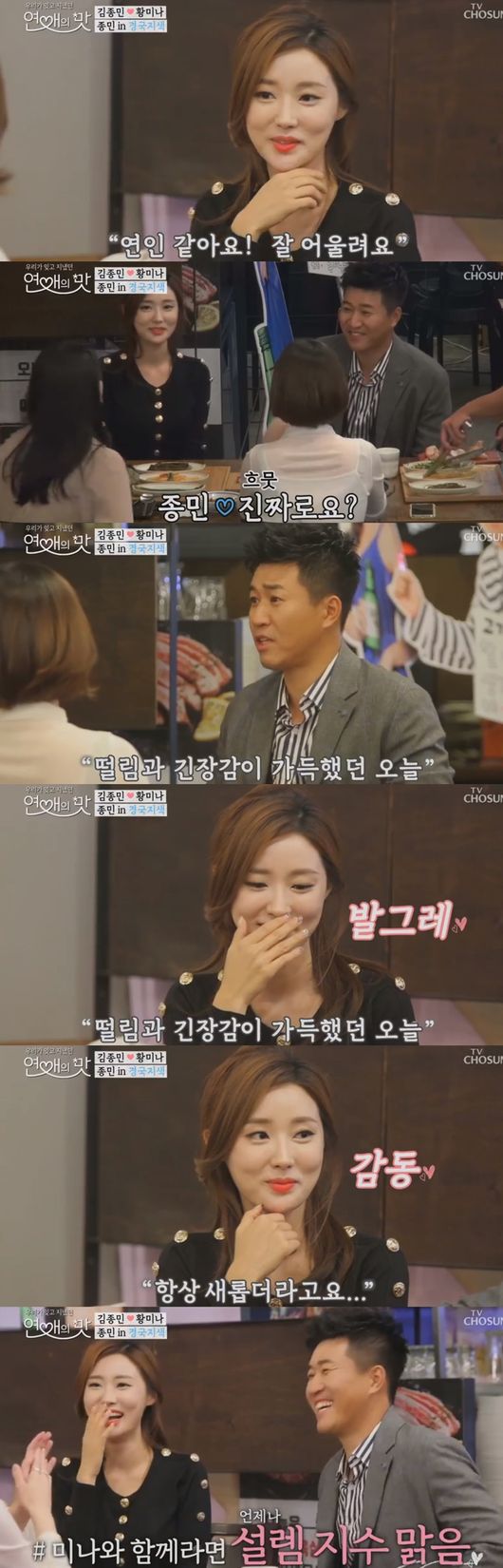 29일 밤 방송된 TV조선 '연애의 맛'에서는 김종민과 황미나가 코요태 공연 무대에 올라 다시 한 번 공식커플임을 선언했다.