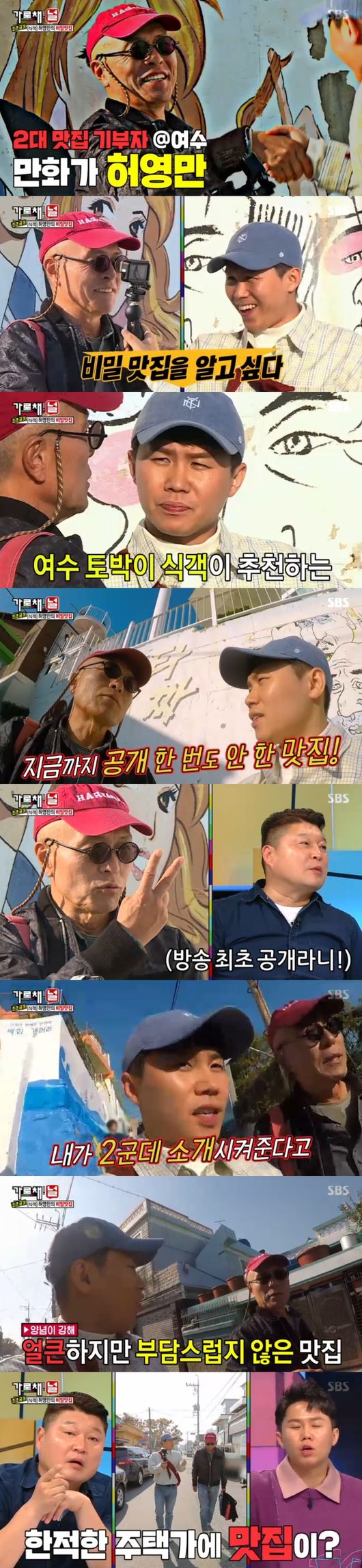 양세형이 여수로 맛집 기부자를 찾아갔다. 2대 맛집 기부자는 '식객'과 '타짜'로 유명한 만화가 허영만이었다. 리얼 식객 허영만의 비밀맛집 공개에 모두 기대감에 찼다. 여수 토박이 맛집이라고. 허영만은 "여기는 한 번도 공개 안 된 곳, 최초로 공개한다"면서 두 곳이나 추천할 것이라 했다.