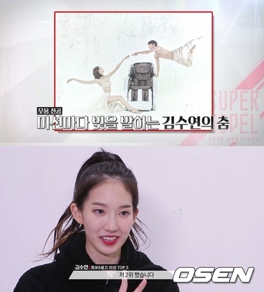 서울대 무용학과를 다니면서 ‘무용 엘리트’로 통했던 김수연은 뛰어난 신체 능력과 청초한 미모로 각종 미션에서 주목을 받았다. 그는 예선 현장에서 한국 무용을 선보여 올패스로 합격했으며, 커머셜 화보, 15초 광고 미션에서 최종 2위를 차지했다.