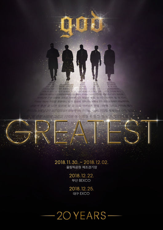30일부터 12월 2일까지 서울 올림픽공원 체조경기장을 시작으로 12월 22일 대구에 이어 25일 부산까지 펼쳐지는 god 20th Anniversary Concert ‘GREATEST’를 키워드를 통해 더욱 자세히 살펴보았다.